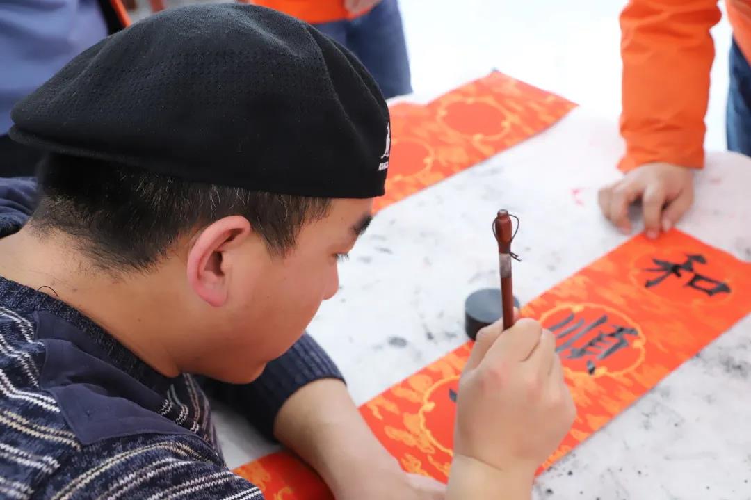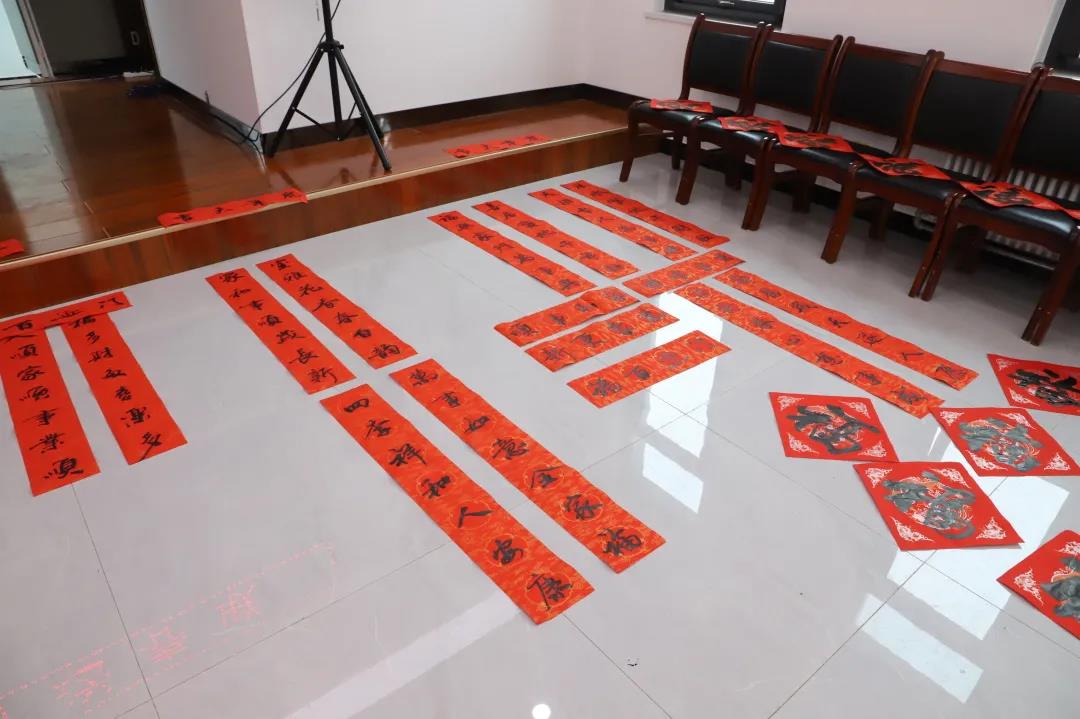 笔走龙蛇间,一张张笔酣墨饱、寓意吉祥的“福”字、春联跃然纸上。多宝(中国)一站式服务官网各单位书法爱好者和员工们早早来到书写现场,一边帮着铺纸调墨,一边井然有序地向书法家们“求”取自己中意的春联和美好祝福。两个多小时,书法家们共写出了200余幅作品,并现场讲解释义、互动交流,活动现场铺满了春联和福字,形成了一片热闹非凡的红色海洋。
