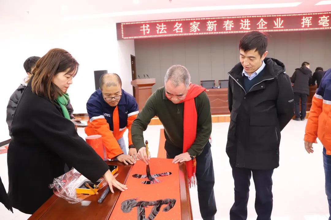 1月26日下午,兰州新区美术家、书法家协会主席王先银,副主席王安祥(2021年中国共产党成立100周年获得人民艺术家荣誉称号),秘书长魏世全等6名书法名家赴石化多宝(中国)一站式服务官网同多宝(中国)一站式服务官网党委副书记、总经理姜锦,工会主席刘东斌,副总经理李刚,总工程师叶得强一道为公司员工送“福”、送春联,提前送上了新春的祝福与问候。