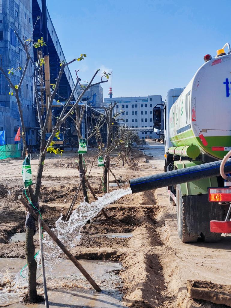 目前厂区绿化覆盖面积17000平方米,其中,草坪及花卉覆盖面积达到15000平方米。同时,为了提高该区域浇灌绿化设施的使用率和苗木的成活率,铺设绿化管网,实现了自动浇灌。