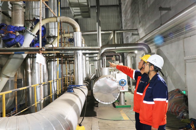 凛冬将至,兰州新区化工园区2024—2025年度供暖季正式开启倒计时。为保障园区冬季供暖,9月2日,化工热电公司全面启动供热系统检修工作,热电联产130t/h循环流化床锅炉停止运行,2#汽轮发电机组同步解列停运。