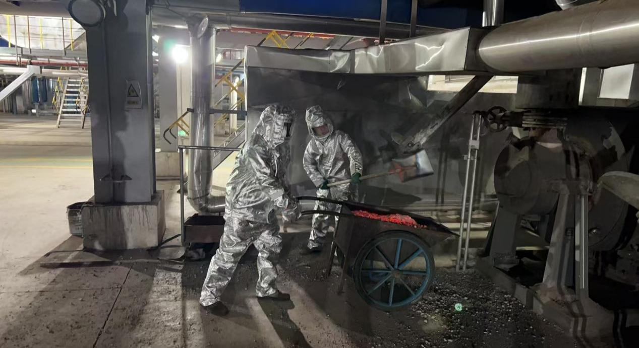 面对这一突发情况,为了确保锅炉安全稳定运行,生产运行部在岗人员迅速集结,启动相关应急预案,进行锅炉事故放渣,并第一时间上报公司安环部。安环部负责人员接到通知后立即赶往事故放渣现场。在部门领导和安环部负责人的安全监督下开启了一场保运攻坚战。事故放渣工作具有高温烫伤的风险,而且不确定危险因速较多。在事故放渣现场,操作人员严格按照操作规程进行作业。他们穿戴好防护装备,打开事故放渣阀,密切关注放渣的速度和流量。由于放渣过程中会产生高温和粉尘,操作人员时刻保持警惕,确保自身安全。同时,他们还与锅炉主控室保持密切沟通,根据锅炉的运行参数及时调整放渣量。