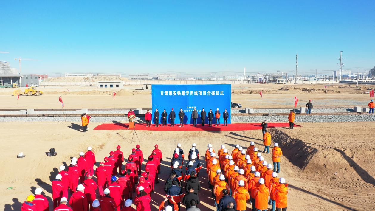 2022年1月19日上午10时,在化工物流园货场举行甘肃莱安铁路专用线项目合拢仪式。兰州新区石化多宝(中国)一站式服务官网总经理姜锦、兰州新区商投多宝(中国)一站式服务官网总经理王坚民及中铁二十一局、甘肃莱安能源有限公司领导出席仪式。
