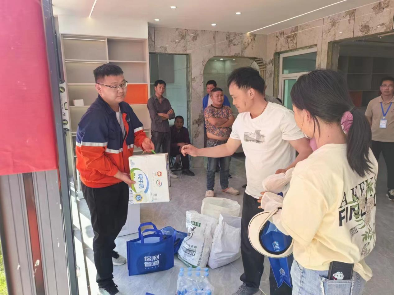 精细化工行业协会的工作人员与新康村村支书为到场的村民赠送了牛奶、洗衣粉等生活物资,了解村民们的生产生活、经济来源、子女就业等情况。在了解到搬迁至新康村的年轻一辈居民工作大多没有着落,精细化工行业协会表示会在化工园区企业发出招聘公告时,及时与新康村相关工作人员联系,为新康村村民争取更多就业机会。