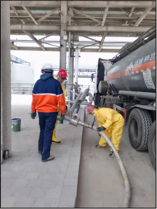近日,化工商贸公司物流园货场碱液储罐首次进料作业顺利完成。