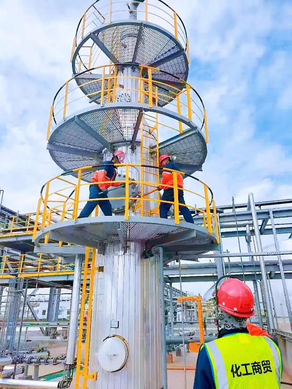 “高处作业的防范措施有哪些?碱液卸车前准备要做到哪些?监护人员的责任是否熟知……”10月4日,在化工园区物流园货场各个施工现场,石化多宝(中国)一站式服务官网化工商贸公司值班领导及技术人员来到施工现场,进行例行巡检。