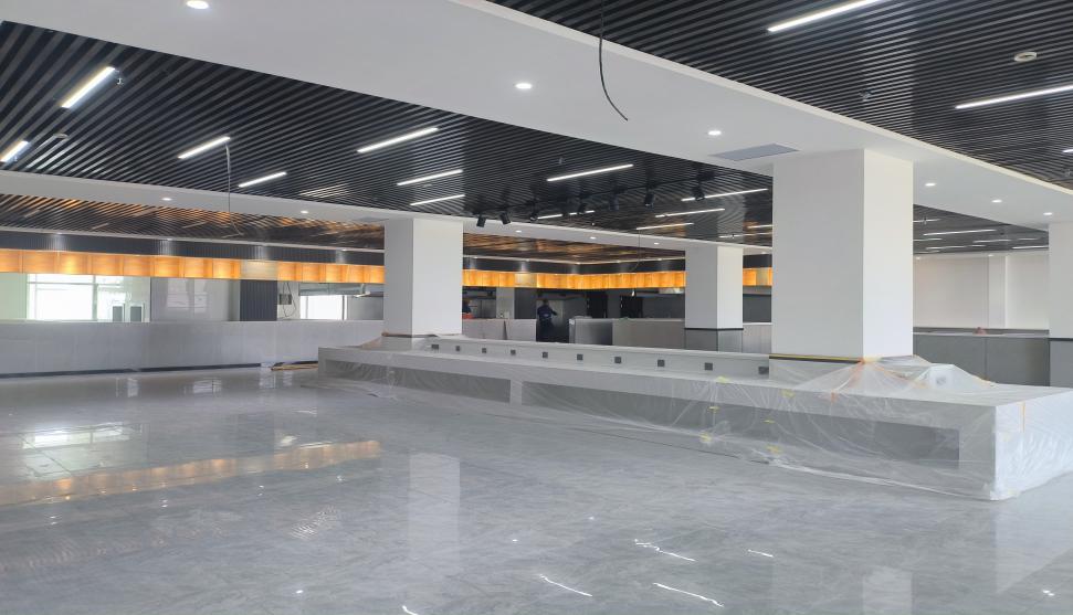 截至目前,已经完成辅助楼装饰装修分部工程中的地面地砖、后厨及卫生间墙砖、内墙抹灰、室内吊顶、后厨轻质隔墙、门窗安装、饰面施工、灯具安装等子分部工程,施工过程中我方与业主单位保持密切沟通,从实际使用角度出发,对施工中的重点、难点进行技术研讨和技术分析,及时确定施工方案、施工措施,对设计中不合理地方及时出修改建议,在施工过程中采用最优施工方案,使项目竣工后能发挥最大经济效益。