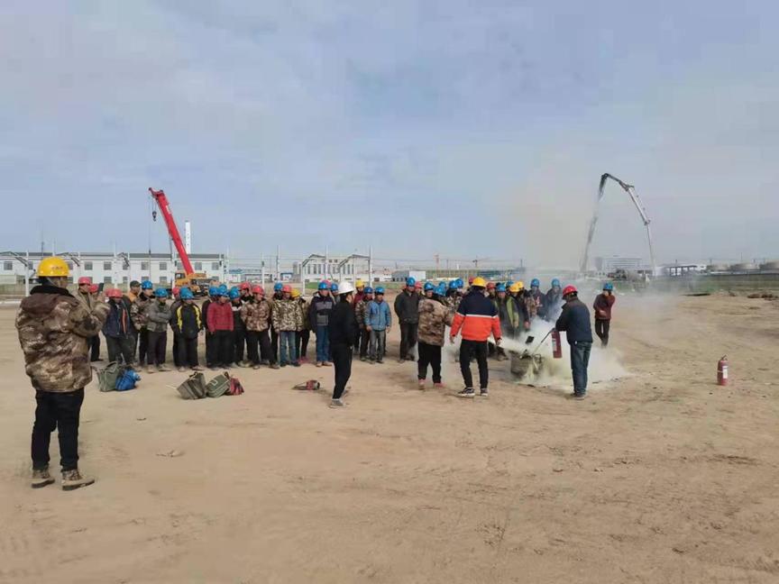 将现场"防火、防中毒、防高处坠落"作为施工安全工作的重点来抓。做好作业区、生活区等重点部位的消防安全管理;强化高空作业管理,采取有效措施,严禁雨雪和大风天气强行组织施工作业;加强防中毒管理,特别是采用煤炉保温作业时,必须对一氧化碳等有毒气体实时检测。例如:森洋隆泰项目污水池和1#、2#仓库正处于冬季施工阶段,存在较高的安全风险,为此,近日项目开展了消防应急演练和全员安全教育培训工作。