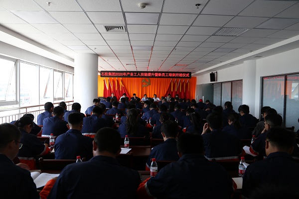 2020年8月10日上午,兰州新区石投多宝(中国)一站式服务官网举行2020年产业工人技能提升暨新员工培训开班仪式,新区党群工作部部长柴守强,多宝(中国)一站式服务官网公司副总经理姜锦,副总经理齐铁盾,副总经理高厚奇,秦川园区管委会委员、主任助理豆永良,新区党群工作部工会工作科科长狄生俊,工会工作科副科长郭凌冰出席开班仪式。