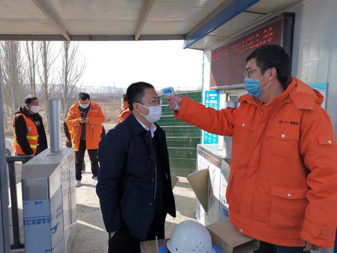 为落实主体责任,协调各参建单位落实好防控措施,工程管理部下发了《兰州新区石化产业投资有限公司关于全力做好建筑工地疫情防控的紧急通知》,督导各项目成立以项目经理为组长的联防联控领导小组,全面负责该项目的日常生产和防控工作。积极动员参建单位管理人员和家在新区的劳务人员提前进场,做好项目驻地的检查工作,并对项目部食堂、宿舍、办公区、施工现场、通勤车全面消毒杀菌。积极配合秦川园区管委会,上报对施工单位、监理单位、检测单位、劳务人员预计返岗的摸排信息,重点排查疫情高发区人员、与确诊人员或疑似病例人员有接触人员。