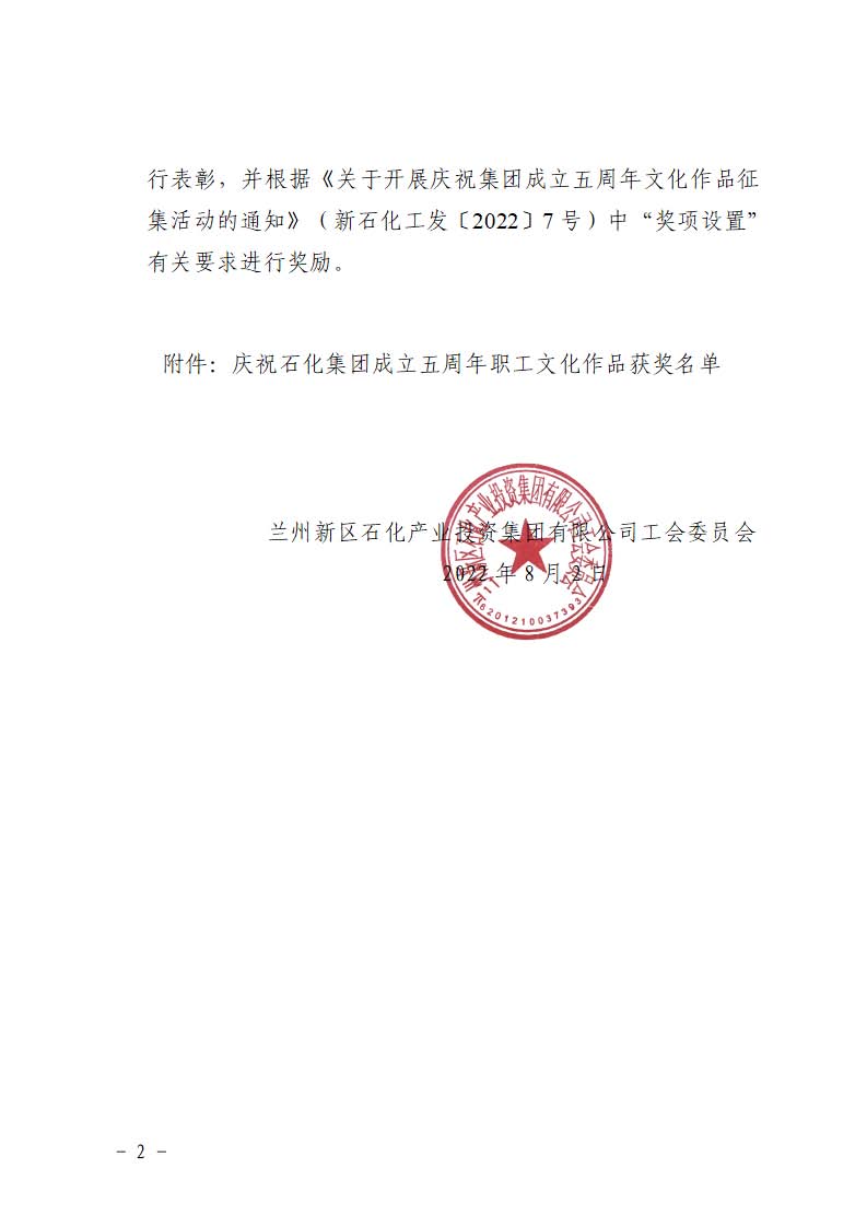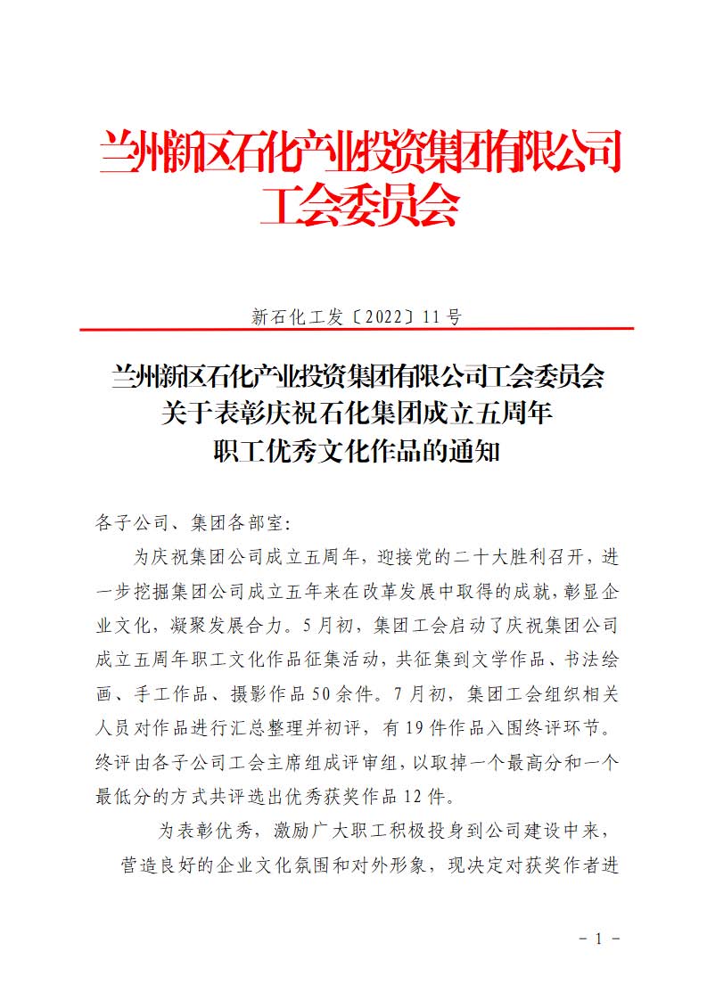 多宝官方入口工会委员会 关于表彰庆祝石化多宝(中国)一站式服务官网成立五周年 职工优秀文化作品的通知