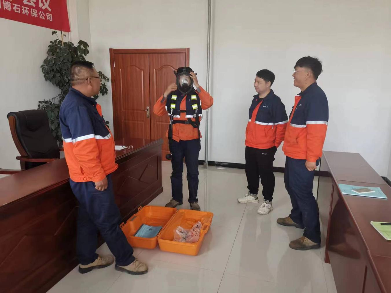为扎实推进安全生产工作,进一步提高博石环保公司应急自救互救能力,不断提升公司应急准备长效机制,结合污水处理厂检维修工作多属于有限空间作业,发生中毒和窒息伤害较多的工作实际。2024年5月14日至21日,兰州新区博石环保公司组织开展全员正压式空气呼吸器使用技能专项培训。