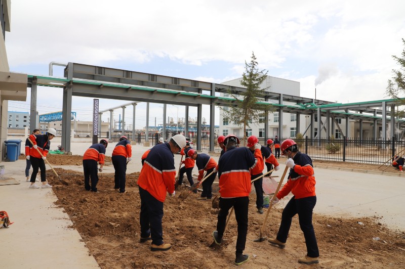 活动中,各位党员用实际行动诠释和践行先锋模范作用,一起挥锹铲土,清除杂物,翻土整地,拉车换土,培土种草,各个环节衔接有序,样样做得认真到位,个个忙得满头大汗。经过一上午的紧张劳动,厂区花坛种上了草籽,为厂区的绿意环绕种下了希望。大家团结一致,相互配合,有力发扬了“劲往一处使、汗往一处流”的团结、互助、友爱的精神。