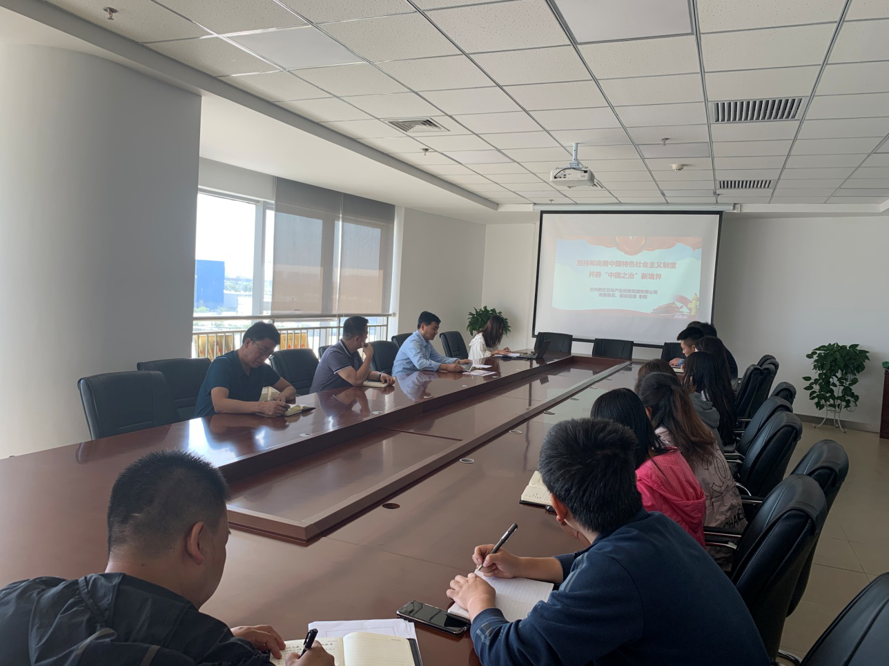 8月26日,石投多宝(中国)一站式服务官网党委商贸公司党支部举行党的十九届四中全会精神专题党课辅导活动,多宝(中国)一站式服务官网公司党委委员、副总经理李刚同志参加活动,并以《坚持和完善中国特色社会主义制度,开辟中国之治新境界》为题为全体党员和入党积极分子讲授了一堂生动的党课。